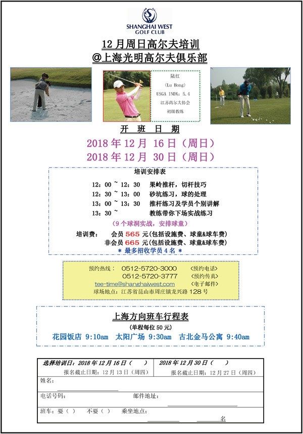 上海光明高尔夫俱乐部12月周日培训教程安排