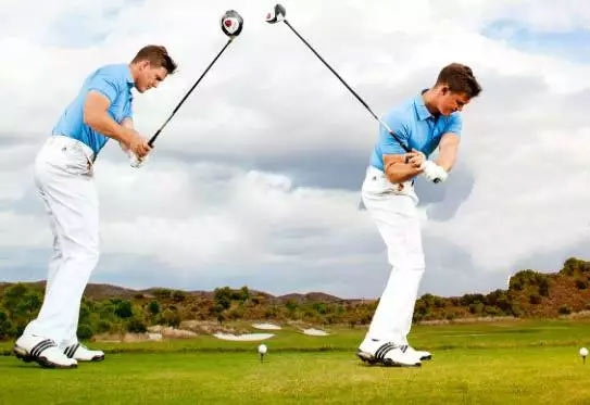 为了使球杆回到击球位置,有些球手会用身体上半身启动下杆。这样会使杆头交叉于目标线击球,从而形成由外至内的挥杆轨迹。