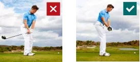 √:要想让杆面在击球点方正击球,在起杆时就要让球杆沿双脚连线方向向后挥出一段距离。当上杆至膝盖高度时,从侧面看,杆头应能遮住双手。可以请朋友来帮忙检查,或使用录相机。