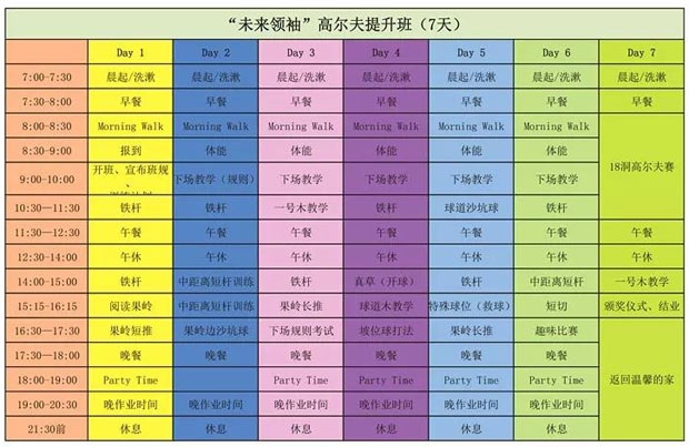 【费用包含】:住宿(球场内宿舍)、早中晚三餐、教练教学费、生活老师服务、球俱提供、下场费、保险、纪年相册、奖状及奖品。