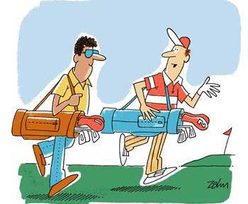 有一次,我照例在某练习场菓领练推杆,不知何时,一个中年人来到我身后,一直看我推球,我没理他,五分钟后他也没走开,我回过头来瞄他一眼,当时只有我们两个人在场,他就走近我 身旁,说:我看你就不会推嘛!我还是没鸟他!他等了一分钟,说:我来教你! 我说:那要怎么推?