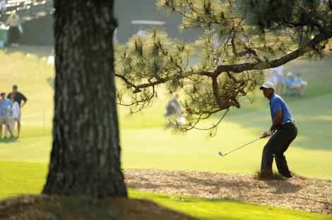 2011年的美国名人赛,奥古斯特球场上,第三轮比赛中,老虎伍兹在第17洞,不小心将球打入松草中,于是开始了天王狂野救球的惊险过程。