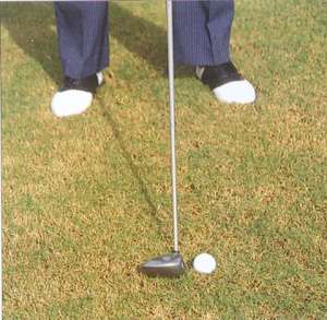 当你遇上这种球位,可以照常使用自己的球杆。和以往一样调整自己的姿势,将球对着你的前脚放置,体重均匀的分布在双脚上。很重要的一点:不要打入草中,尽量作出幅度较宽的上挥杆,下挥杆时扫击草上面的球。