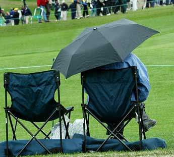 欧巡赛中,在恶劣天气情况下表现最好的球手之一是Paul Lawrie,我想其中一个原因是他喜欢穿着雨衣练球。Paul是最不怕雨水的球手,因为他知道穿着雨衣他一样挥洒自如。在西班牙雾蒙蒙的早晨,你会看到他在练习场上,从头到脚穿着Gore-Tex(一种防水的,透气的薄纤维品的商标,主要用作雨衣和鞋)。你不妨偶尔穿上雨衣练球,练到可以轻松自在的挥杆,其中好处到雨天你就体会到了。