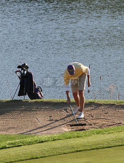 在果岭上推杆会经常留下球标的印记(ball mark),请教你的球友或球童如何修复痕迹。沙坑里打球后,务必耧平沙坑。
