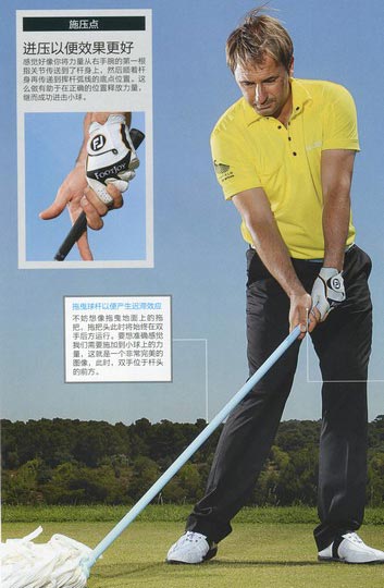 不妨想像拖曳地面上的拖把,拖把头此时将始终在双手后方运行。要想准确感觉我们需要施加到小球上的力量,这就是一个非常完美的图像,此时,双手位于杆头的前方。
