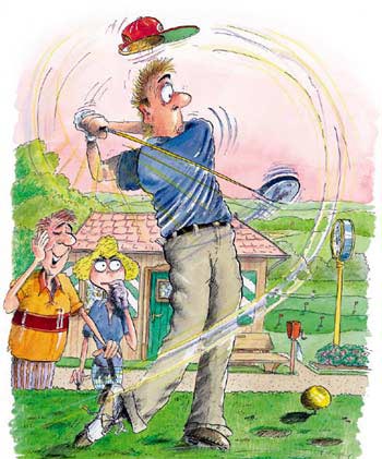 另外一个应该考虑的就是身体姿势。如果身体姿势错误,弯腰低头太多,没有保持较高的站姿,那击球将过于下砸。背部弯曲成弓形,动作将是一个挖起动作,结果是完全的挖地,而无法将球击出,因为弯曲的背部无法保证螺旋式的正确旋转。
