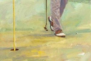 答:由于推杆线已受损害,应当可以通过按压钉鞋划痕来使其恢复原状。当球员的球已静止,上述情况在通常的原则下,球员有权修复他球的位置状态和推击线随后造成的损害。任何人都可以来修复推击线,如果造成的损害已不足以修复,球员可以请求主管赛事的委员会进行补救,委员会可以宣布(损害地区)为整修地。
