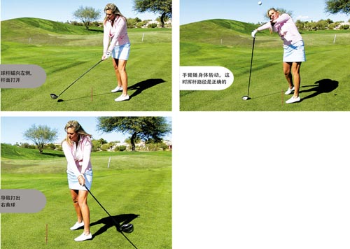 对于那些经常打出覆盖式挥杆的球员来说,这是很好的训练方法,因为能使双臂在正确的挥杆线路上自由地移动。同时,由于挥杆动作顺序变得很自然,脊柱角度和身体前倾也能保持稳定。