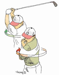 所以,要获得最大的挥杆威力,上杆时要主动扭转躯干。