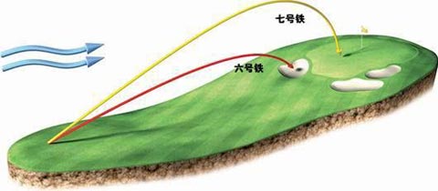 小贴士:虽然听起来不大可能,但是顺风用7号铁打的球能比6 号铁打出去的飞得远些。