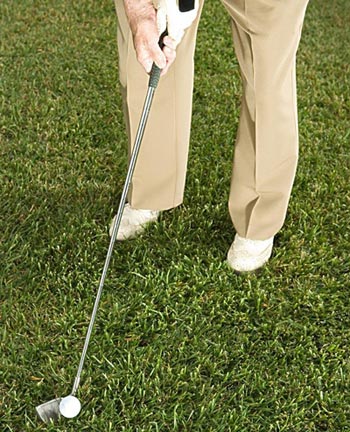 在这里,当球员把球杆放到球后的地面,球向下陷入暂时应该算作“移动”了,因为它离开了原来的位置。规则里不考虑球是水平移动还是垂直移动,只要球离开原来的位置,就视为“移动”了。但是,当球员上杆的时候,球又回到了原来的位置。此时根据定义,球没有发生移动,因为实际上球员击打的还是处于同一个位置的球,因此不会被罚杆。