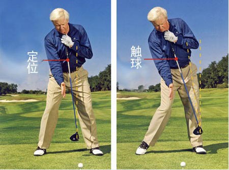 在高尔夫运动中,脊柱的侧倾是最容易被人们误解,也最容易被忽视的一个环节。一些长打者在用1号木开球时,定位时脊柱侧倾的角度大概为10度左右。然而更重要的是在触球瞬间的脊柱侧倾。在这里我要纠正的一个错误观点:触球时应该让身体还原到定位时的姿势。相反脊柱的侧倾应该加倍。