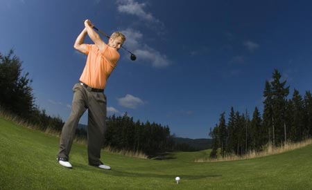 如果你是上述的典型案例,这里有个矫正方法。摆出击球准备姿势之后,先曲腕启动上杆,让杆身立刻和地面水平,接着就旋转肩膀到达上杆顶点。双手手臂是完全被动的,当肩膀停止转动时,就是上杆顶点。这么做能让你的挥杆动作更精简且扎实,同时肩膀的转动更确实。