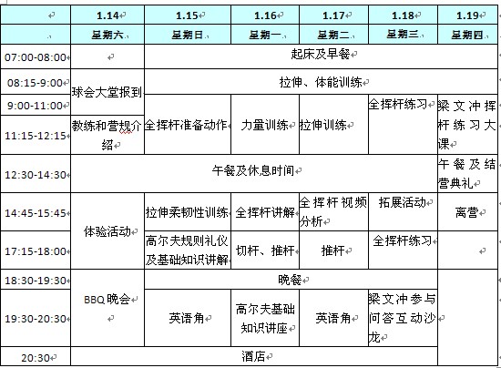 六天五晚的课程,适合5岁以上高尔夫爱好者参加,年龄无上限.