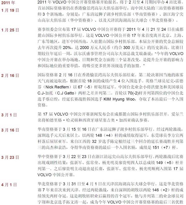 2011-2012年 沃尔沃高尔夫业余赛大事记