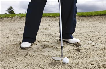 4、提倡正常的挥杆:击球时最好用正常的挥杆,并且瞄准球后2-4英呎的位置,这样可以帮助你把球击出沙坑,如果你想再精准一些,那么要在下杆时学会「切」这个动作。如果你想让球落地后快速停下,那么你要提高下杆速度。