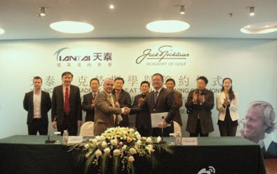 天泰温泉高尔夫俱乐部与尼克劳斯学院于3月20日举行签约仪式,成为中国第一家尼克劳斯学院,拥有最完善的教学设施。