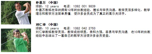 天津华纳国际高尔夫俱乐部教练及课程介绍
