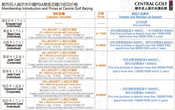 北京都市名人高尔夫俱乐部教练课会籍介绍及价格