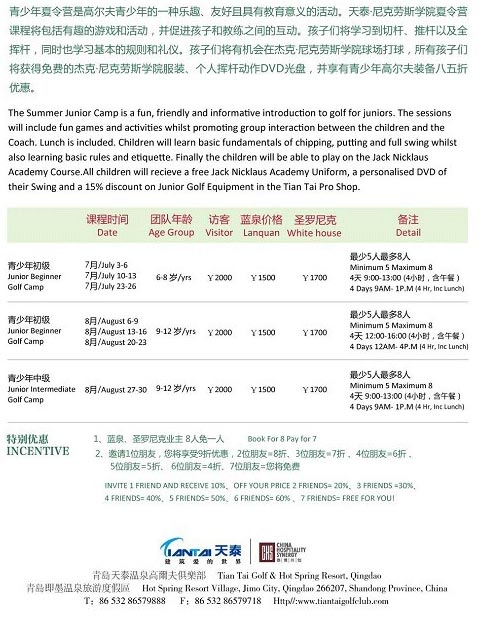 山东青岛天泰高尔夫青少年夏令营激情报名