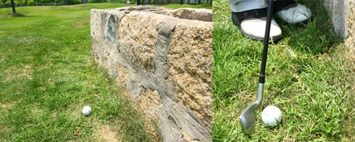 由于有些球场在球道或果岭边有围墙或大石头,如果球落在墙根或者大石头下面,就无法用正常的打法将小球击出。面对这些不可移动障碍物,要么接受处罚抛球罚杆,要么就直接打。直接将球打出的话就需要采用一些技巧才能脱困。