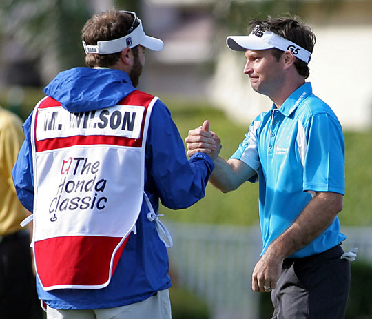 结果:威尔森因此被罚2杆。不过幸运的是这一插曲并没有影响他的情绪和发挥,经过加洞赛,他最终获得了该项赛事的胜利。