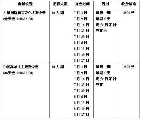 B级高尔夫夏令营培训目的