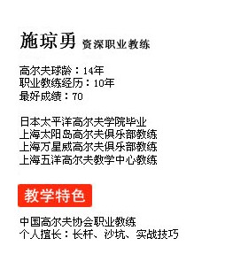施琼勇 上海五洋高尔夫教学中心资深教练