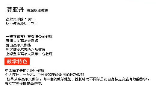 龚亚丹 上海五洋高尔夫教学中心教练