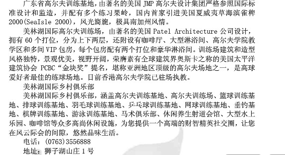 广东美林湖高尔夫训练基地将于2013年投入使用