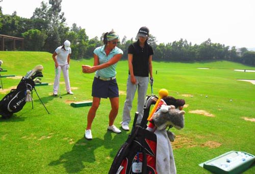 2012年10月24号美国女子职业球手金·维奇(Kim Welch) 在深圳会员练习场与观澜湖高尔夫学院女学员进行了交流,其中包括中国女子职业高尔夫球手陈利庆。