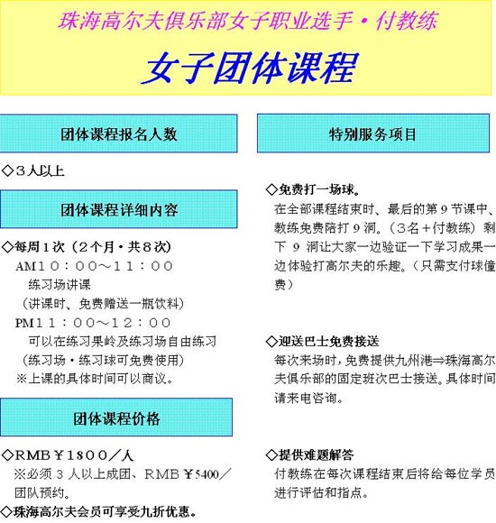 1800元/人 珠海高尔夫俱乐部女子团体课程