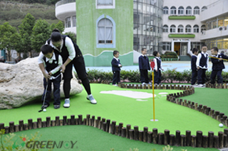学习高尔夫对青少年的身心发展是非常有帮助的,学校开设高尔夫课程,可以通过这项绿色、有氧、阳光的运动,让学生得到健体、礼仪、交往、英语等方面的训练,为学生搭建了解这项运动的平台,同时提高学生综合素质,丰富经历,帮助他们开阔眼界。但是目前中国的球场不仅离市区远,也没有一家是公众的平价球场,加上现在的青少年学业繁重,并无太多课余时间,若要去球场打球,只能利用假日的时间靠父母的接送,除去来回所需时间,真正练球的时间其实很有限,倘若父母还有自己的事业要经营,不能每周都带孩子去球场,那么练球的机会又少了很多。衡泰信凭借十五年的高尔夫行业经验,为青少年提供了最佳高尔夫解决方案。通过合理的高尔夫课程安排,针对不同年龄阶段的孩子设置不同的高尔夫体验。幼儿园、小学阶段是初步的兴趣培养期,可以开设迷你高尔夫、模拟高尔夫课程,为了让设计更加符合孩子的心理,我们可以在迷你高尔夫球场里面布置一些卡通人物、城堡等,让孩子从零接触高尔夫时就对高尔夫产生浓厚兴趣。中学阶段可以开设果岭和模拟高尔夫课程。我们将根据孩子的身心特征,建造适合青少年练习的造型多样美观、难度各异的仿真人造草果岭,使有限的空间发挥最大价值,让孩子们在仿真果岭打球,犹如置身高尔夫球场,在阳光、绿地和清新空气中享受挥杆进洞的成就感。Greenjoy模拟高尔夫则是青少年学习高尔夫的最佳辅助工具。