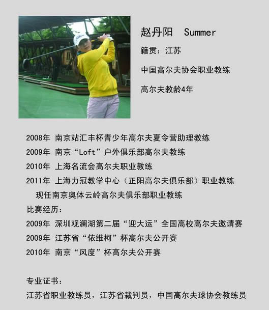 2012年 南京奥体云岭高尔夫俱乐部 职业教练