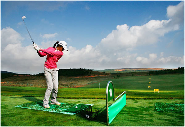 在练习场,越来越多的少年球手加入了练球的行列,当然,他们都是随父母前来的。少年球手必须有一套适合自己年龄、身高的球杆,而练习方法也应该与成年人有一些差别。少年球手的力量较小,而球杆也不像成年人使用的球杆那么硬,都是较软而弹性很高的,另外,他们的身体在一天一天的改变,因此没有必要练就一套固定的动作,但是必须遵循高尔夫运动技术的基本原则。