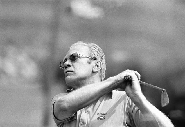福特(Gerald Ford)是最具运动细胞的总统之一,但同时也是一个发挥不稳定的高尔夫球手。 他是名副其实的高尔夫球爱好者,也是首位在任期内参加职业/业余选手混合赛的总统。 他在总统任期内的高尔夫球差点徘徊在18上下,最好成绩是81杆。 左图为1975年8月12日,福特在科罗拉多州威尔镇打高尔夫。