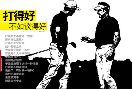 打高尔夫不定点“规矩”还有什么意思?在高尔夫业余圈,战斗打响之前,大家要先谈好“条件”,毕竟每个人水平不同,要想打得开心,谈判是必须的。于是就出现了这样一种情况:打得好不如谈得好。说白了,有时候一场PK,最后的赢家未必是竞技高手,而是谈判专家