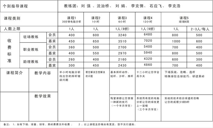 广东东莞长安高尔夫学校指导课程收费标准