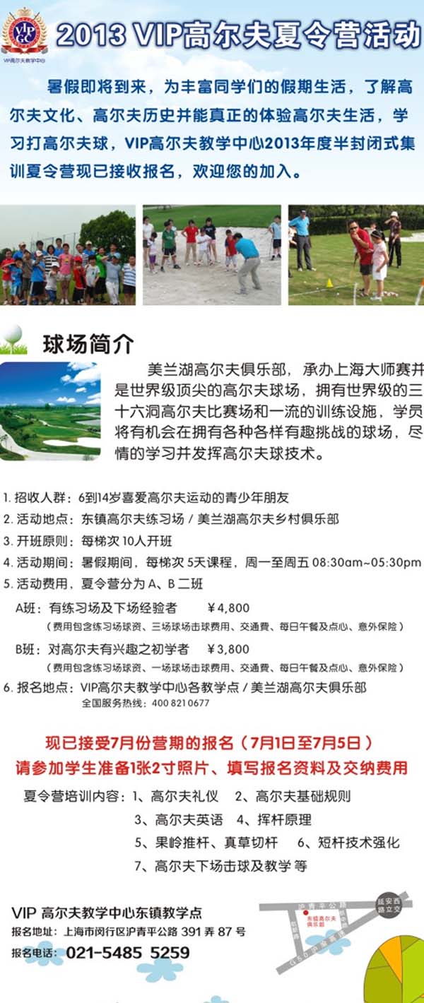 2013年上海东镇/美兰湖高尔夫夏令营报名中