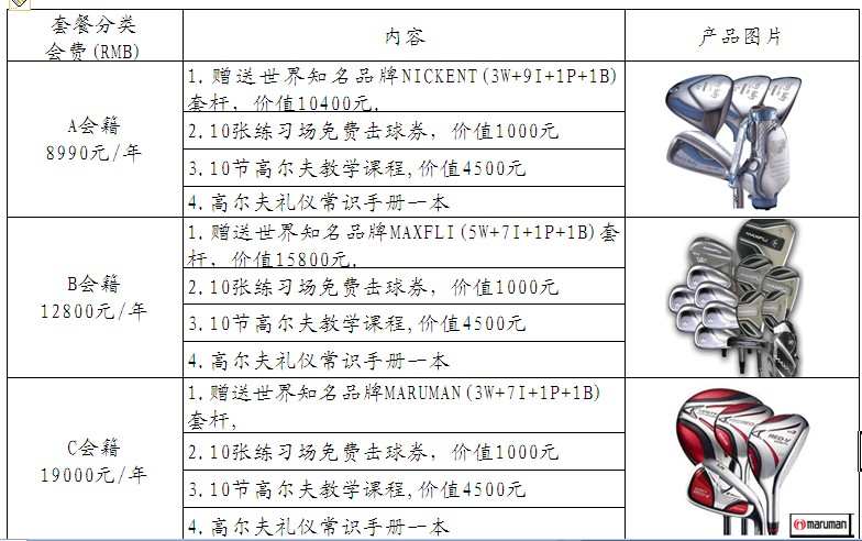 君逸高尔夫教学课程价目表