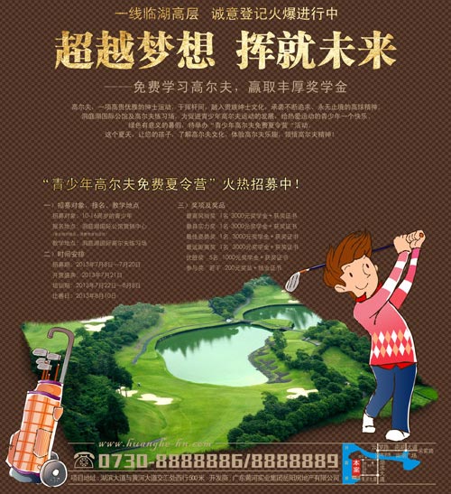 洞庭湖国际公馆及高尔夫练习场,为促进青少年高尔夫运动的发展,给热爱运动的青少年一个快乐、绿色有意义的暑假,特举办“青少年高尔夫免费夏令营“活动。这个夏天,让您的孩子,了解高尔夫文化,体验高尔夫乐趣,领悟高尔夫精神!