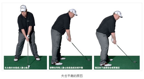 第二个失去平衡的原因很简单,就是站位过窄。全挥杆一定要有扎强壮的根基,有助于转身。