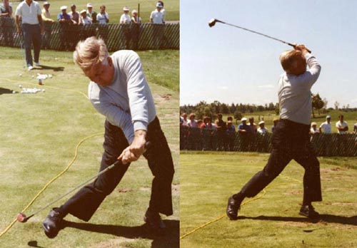 "球杆越重越好。我的球杆的挥重是E-3,我的1号木的重量是16盎司(约为0.45千克)。为了达到这种重量,我在握把下的杆身和杆头上都贴了铅片。我不喜欢轻的球杆,那对我来说就像火柴一样,当你挥杆时,球杆会乱晃。"