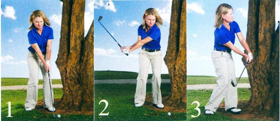 我们在打球的时候,当球停落在树旁边,如果你做出全挥杆的上杆,顺势动作中球杆就会击中树干。