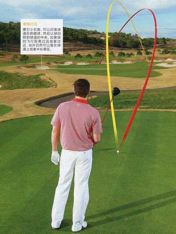 根据某一球洞的设计形状或前方障碍的位置,可以将身体对准球道的边缘,然后通过曲线球让球回到球道的中央。