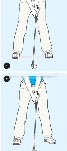 如何避免膝伤:为了合理发挥左腿的作用,左膝关节在启动下杆阶段要迅速移动至左髋外侧。左腿应该在下杆过程中垂直地面或者朝远离目标的方向倾斜,而不应该朝目标方向倾斜。为了做到这一点,髋关节尽量多转动,少横向侧移。定位时将左脚向外转20到30度有助于髋关节的转动。