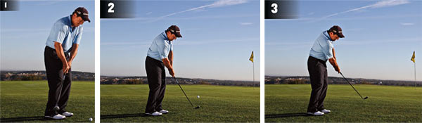 我希望看到的是,球切落地后,球在果岭上滚动速度能尽可能地快。这意味着最少的离地时间和最多的地滚时间。这种球最准确的叫法应该是“切推球”(chip putt),之所以叫这名是因为我会让学生像打推球一样审视形势,但是却要像切球一样去击球。