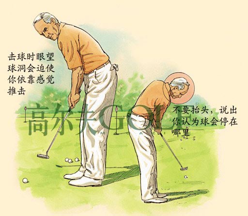 如何磨练长推 切记眼望球洞而不是眼望球