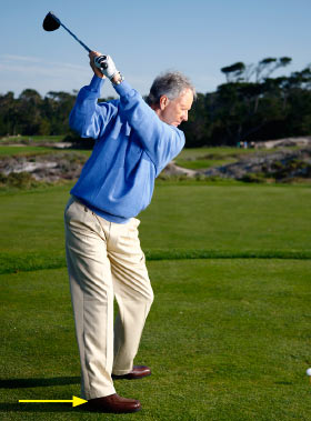 如果你收看一场电视转播的职业比赛,你第一个注意到的将会是:他们能够在收杆时近乎完美地保持平衡。业余球手恰好相反,他们在触球时往往会向后或者向侧面倒,这表明他们在挥杆过程中一直未能保持好平衡。如果你想以球杆的甜点触球,将能量最大限度地传递给球,增加击球距离,你必须在挥杆过程中保持好平衡。要做到这一点,关键在于:在挥杆的各个阶段,在双脚之间正确转移重心。按照下面的步骤来做,你就能实现该目标。